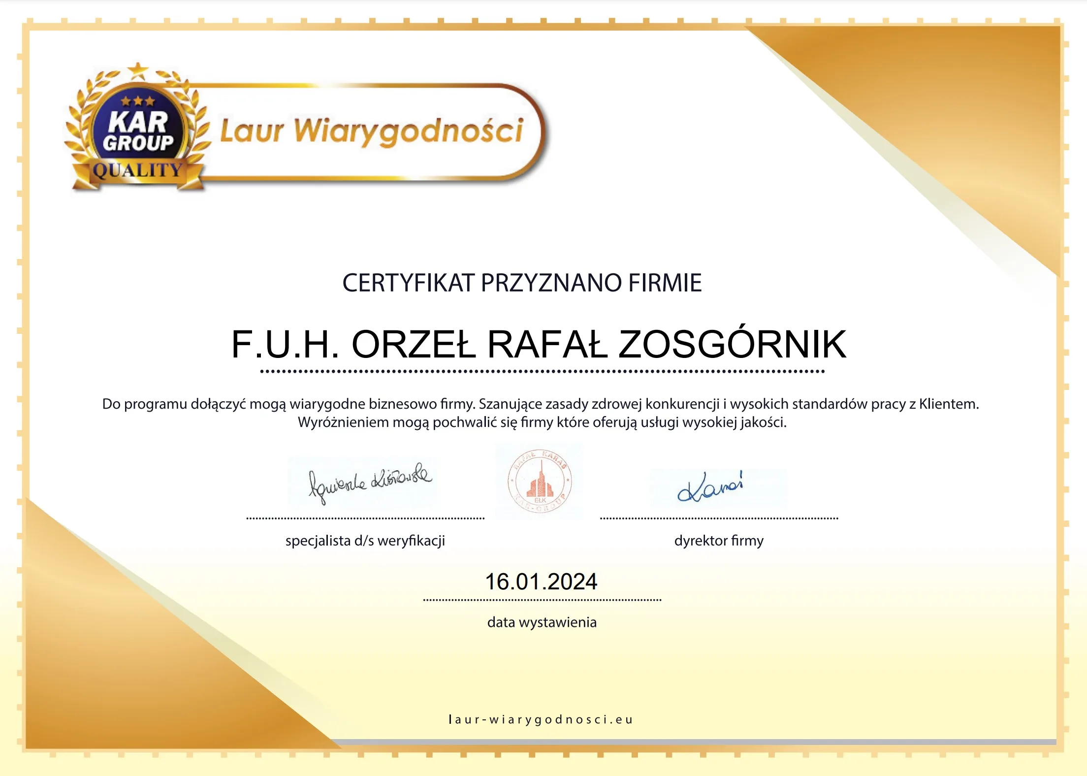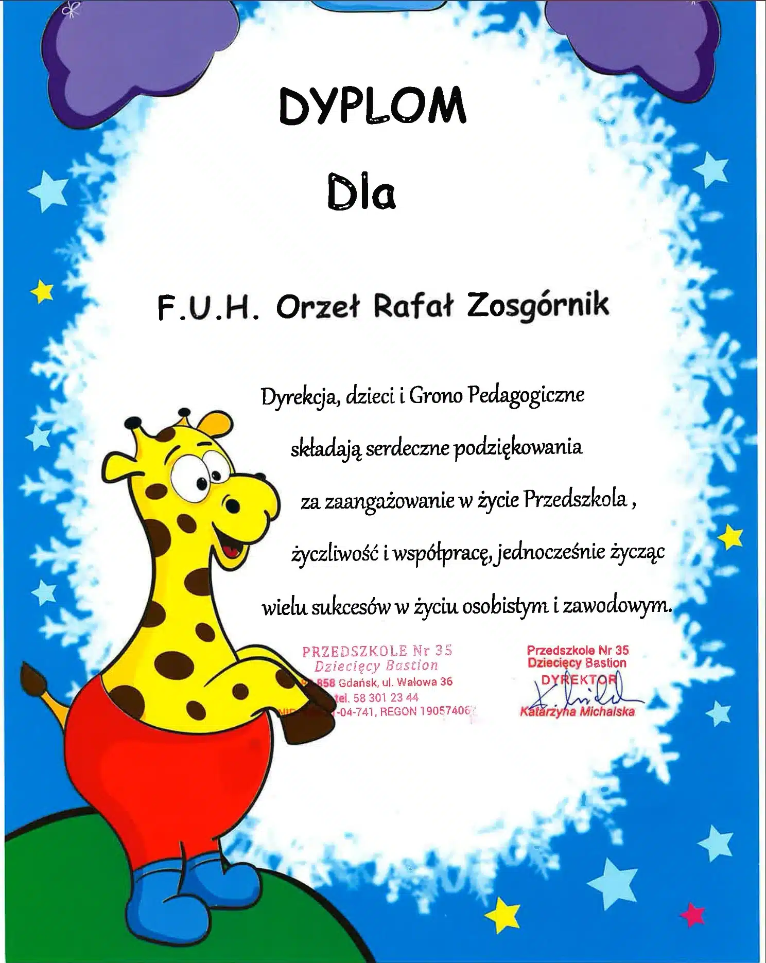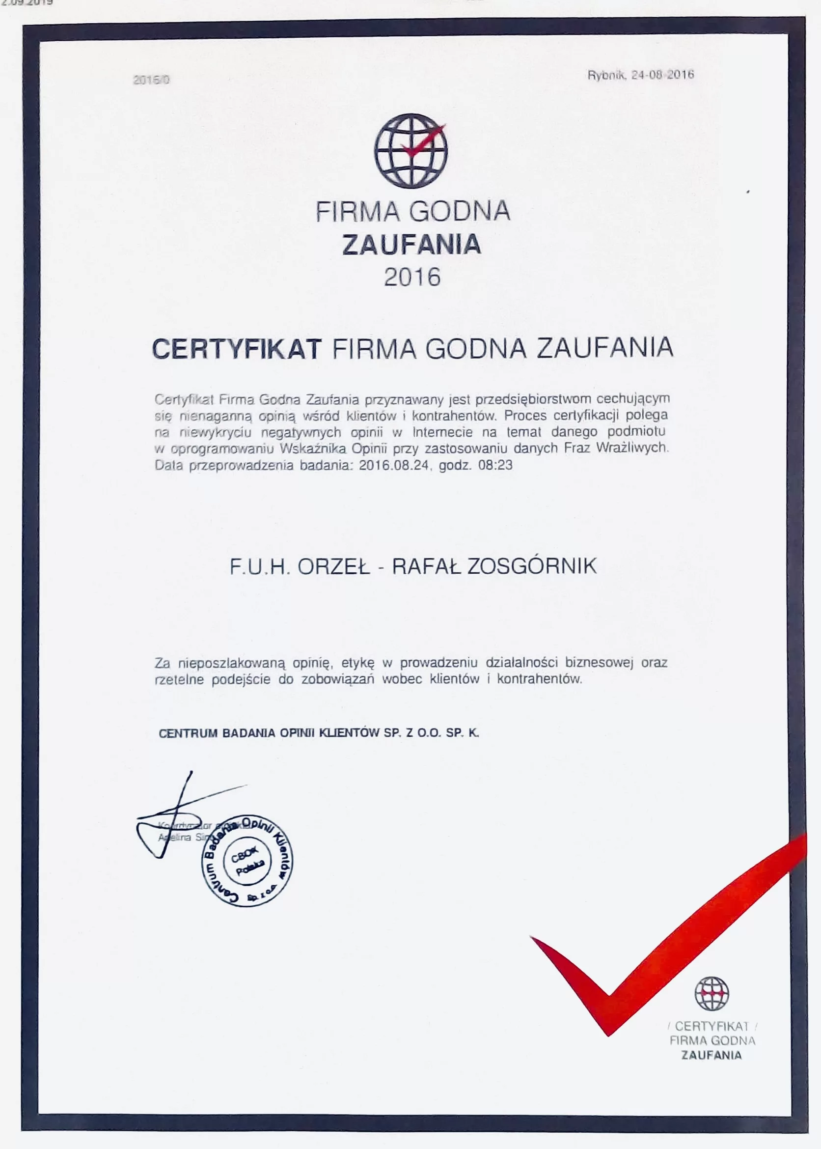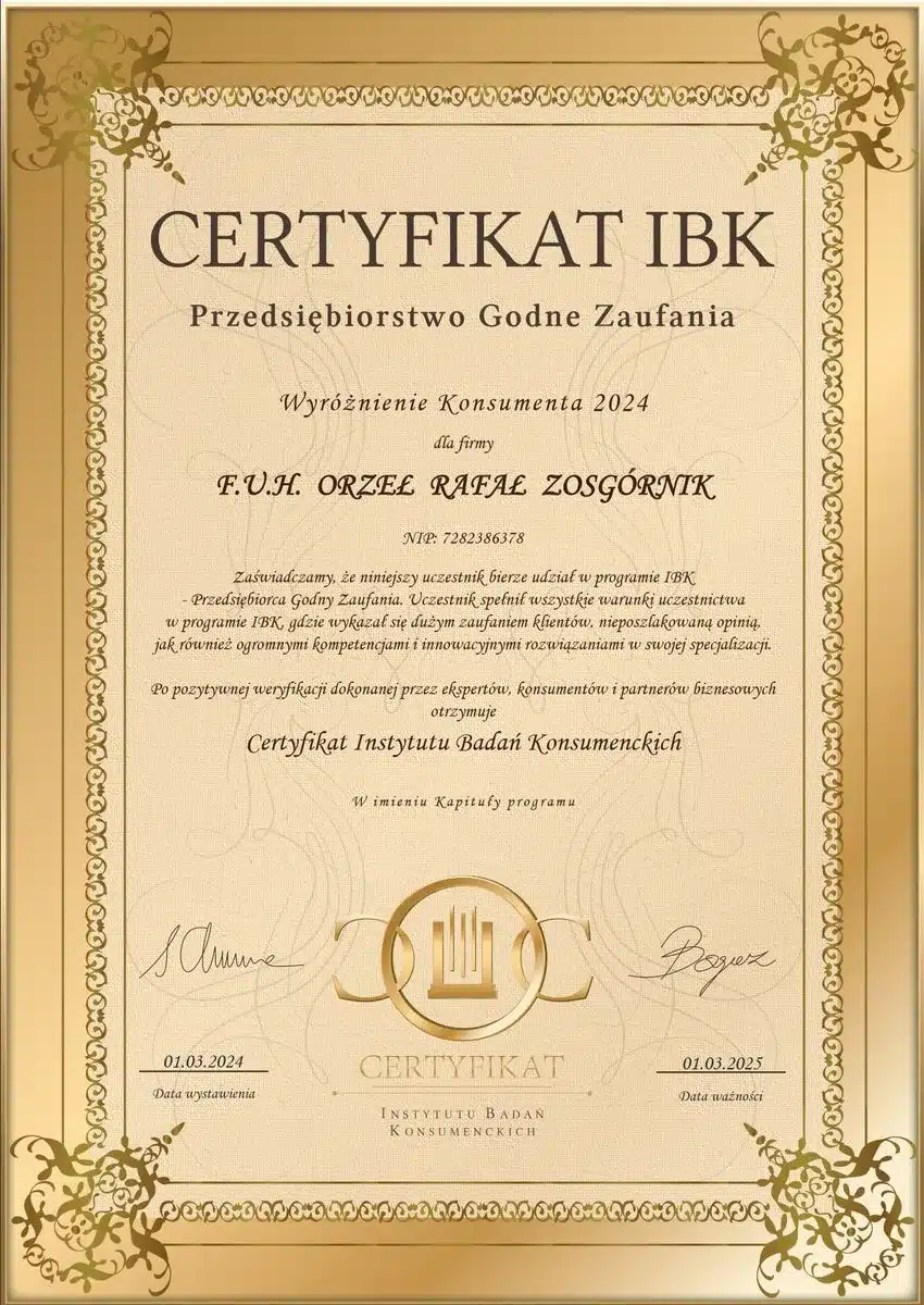 To właśnie dzięki Waszemu zaufaniu i zaangażowaniu otrzymujemy liczne zaświadczenia, certyfikaty i podziękowania, które są dla nas wielkim wyróżnieniem i motywują nas do dalszego rozwoju. Prezentujemy je tutaj, byście przekonać się o naszej rzetelności i profesjonalizmie.